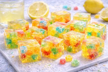 - Version arc-en-ciel : mélange plusieurs bonbons colorés.