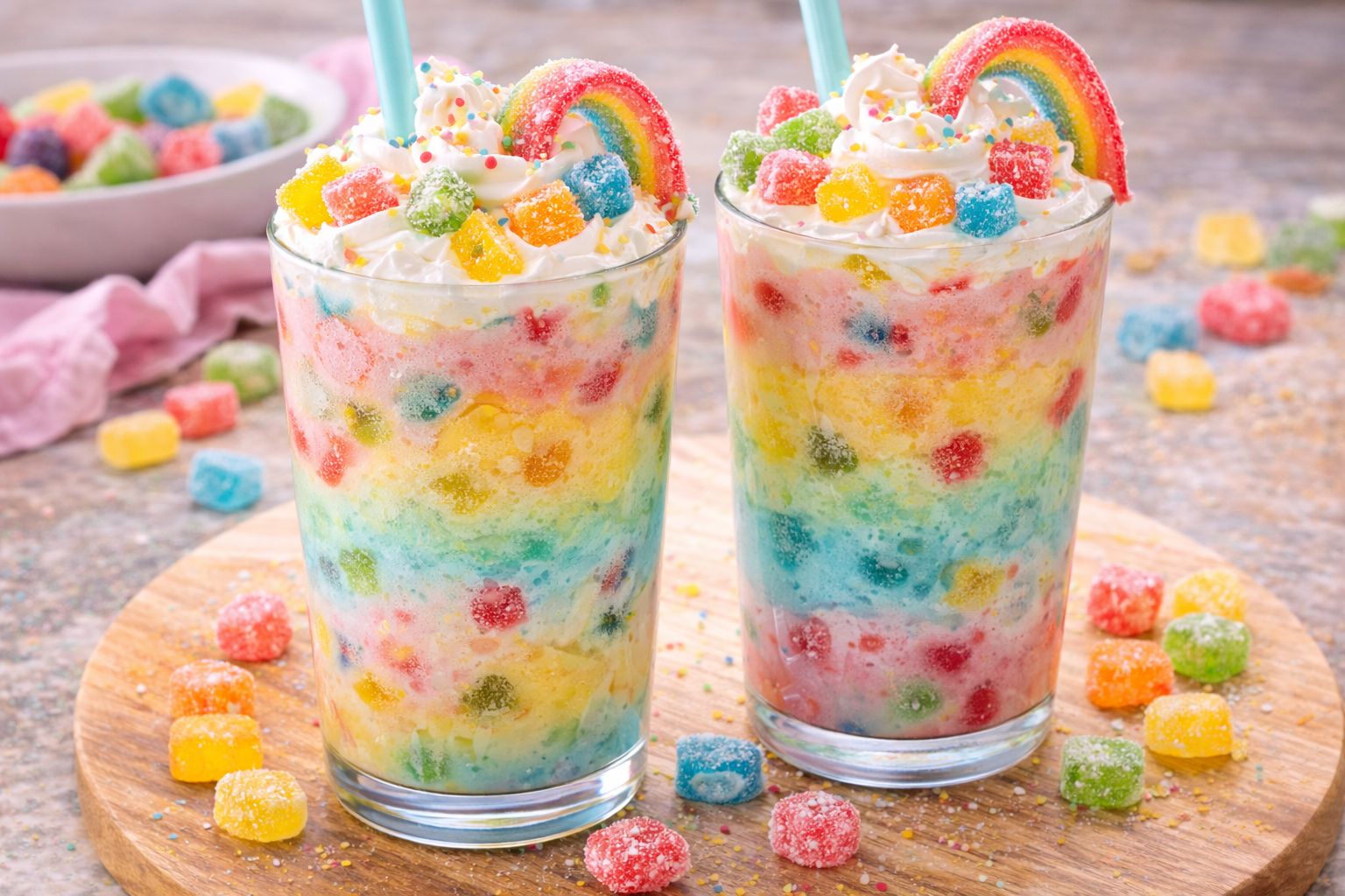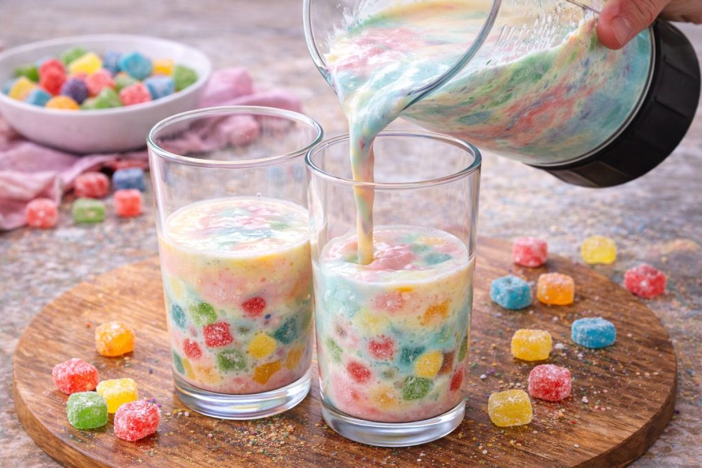 Coloré, crémeux et ultra gourmand, le milkshake arc-en-ciel aux bonbons fruités est une boisson-dessert spectaculaire. Les couches colorées et les bonbons ajoutent une touche festive parfaite pour les goûters, les anniversaires ou les candy bars.