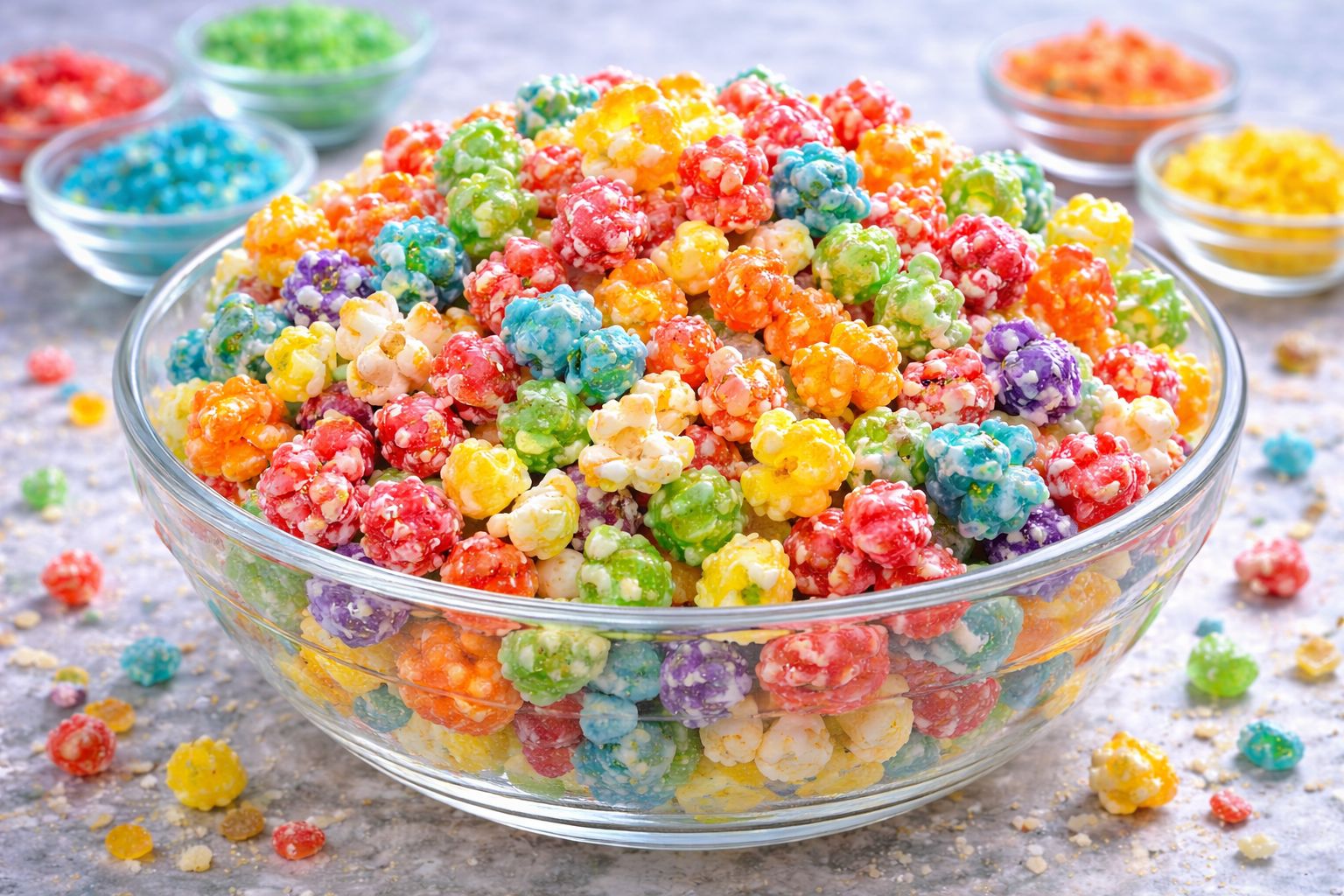Coloré, croustillant et totalement addictif, le popcorn arc-en-ciel aux bonbons fondus transforme un simple popcorn en snack sucré spectaculaire. Grâce aux bonbons fondus qui servent de glaçage coloré, chaque poignée devient une explosion de couleurs et de gourmandise.