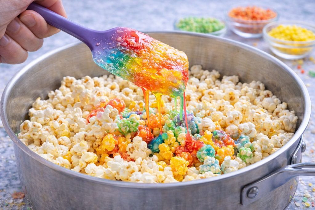 Préparation du popcorn arc-en-ciel